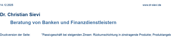 - Wenn zu schnell und werblich zu stark unterstützt kurzfristige Anlageprodukte angeboten werden, läuft die Bank in stark steigende Passivzinsen und gerät angesichts festgeschriebener Aktivzinsen in Ertragsprobleme. Besonders schlimm wäre es, wenn durch die Umschichtung die definierten Bodensätze unterschritten werden und dadurch eine Neufestlegung der Gleitzinsmischungen mit allen daraus resultierenden Folgen notwendig wird.