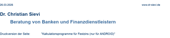 Die Programme sind primär Vergleichsprogramme für Kunden! Sie basieren auf einheitlich gesetzten Annahmen und pauschalen Kostenstrukturen. Für den Einsatz in Banken zu deren Kalkulationen sind sie in den als Download angebotenen Versionen deshalb nicht geeignet.